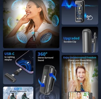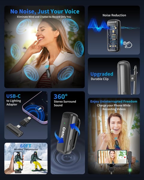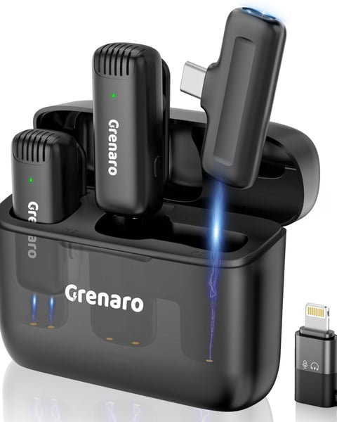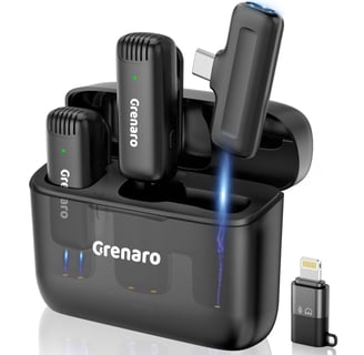 Capture crystal-clear audio for your YouTube videos, Reels, online classes, and Zoom calls with the GRENARO J13 Wireless Microphone. This dual-channel lapel mic supports both Type-C and iPhone, and includes a sleek charging case that doubles as a power bank for continuous use.